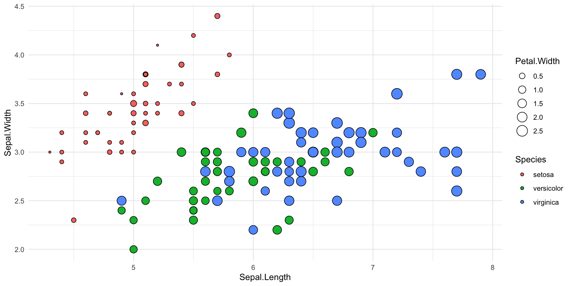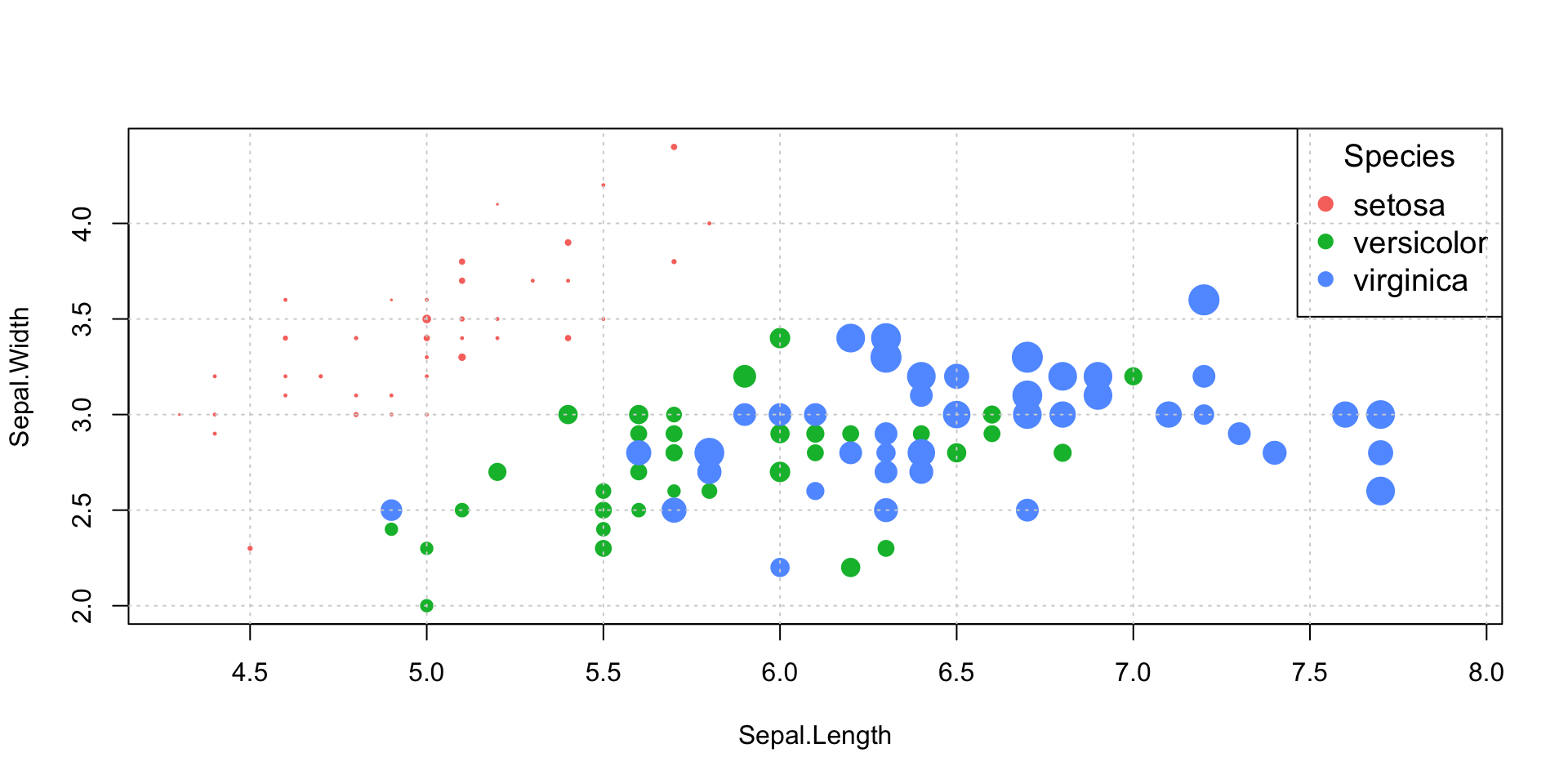 legend("topright", legend = levels(iris$Species), col = species_palette, pch = 21, pt.bg = species_palette, cex = 1.2, title = "Species")